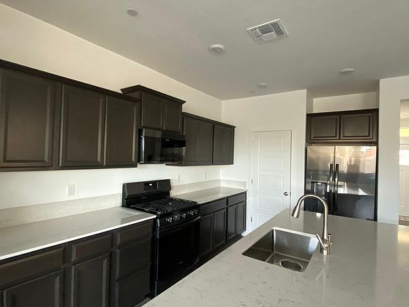 Available on August 2nd Amazing, brand new Lennar home features vinyl flooring in the kitchen, dining room and living room. This open floor plan has Quartz countertops in the kitchen with a huge island, gas stovetop and stainless steel appliances with fridge included. One full bedroom and bathroom are also located downstairs. Upstairs features the master bedroom with Quartz countertops, double sinks and a walk in closet. The 4 other bedrooms share a bathroom with Quartz countertops and double sinks. The upstairs laundry room features tile flooring, storage and washer and dryer included. Property is very close to UC Merced. This is less than a 10 minute drive to UC Merced and a block away from CatTracks stops for the bus into UC Merced. Shopping complexes are also just 5 minutes away for restaurants, groceries, etc. Owner pays for HOA and front yard landscaping. Tenant pays for water, sewer, garbage, utilities and solar. No Pets. No smoking.