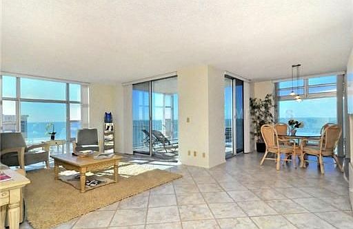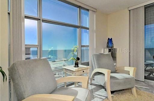 This condo is a corner unit and has spectacular views of the Gulf of Mexico as well as views of the Bay. At night, the lights on the bay are beautiful. The large balcony looks directly on the beach.Have your morning coffe on the balcon orin the breakfast nook where the waves feel like they're coming right in the window. Three month minimum rental. Fully furnished and turnkey ready for your relaxation and pleasure.