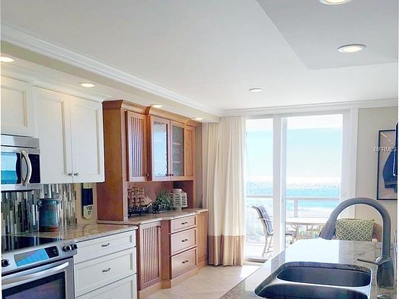 Direct Gulf Front Residence with spectacular Gulf views from every room. This residence is absolutely stunning with an open concept split plan, completely renovated with absolutely amazing attention to detail. All-new kitchen cabinets, granite counters and appliances. Wake up to the glorious views of the blue Gulf waters in this spacious master bedroom, with coffered ceiling, customized walk-in closet, and a master bath featuring new shower & commode, new cabinet with granite counter and dual sinks, and a new closeted laundry. Brand new HVAC installed November 2017. Beautiful crown molding throughout, custom insulated drapes, new glass sliders, new tile floors throughout the residence and extended onto the Gulf front terrace, new clear plexiglass terrace railings. Located in the "D" tier residence which is the closest tier to the water, and is the most desired because it is the tier where you can see the sunsets year round. Spacious, light and bright with walls of glass, this residence is truly a dream. Sea Gate Club has a Gulf front pool, Har-tru tennis court, Kayak/Paddleboard storage, brand new exercise room, brand new social room overlooking the Gulf with a full kitchen, bicycle room, on-site management, and a beach just waiting for your footprints. Publix is just across the road, shopping and fine dining is just minutes away. Drive 6 minutes to world-famous St. Armands Circle.