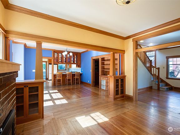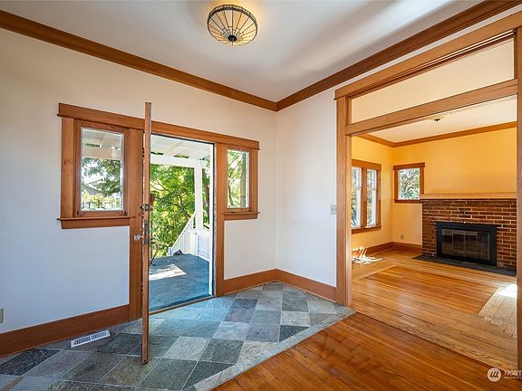 Craftsman charm in the best of both Columbia & lively Fountain District neighborhoods. Flooded with natural light & character this 1924 built home, renovated in ‘06, has quality that can't be matched. Enter through the mature landscaped yard w/ fruit trees onto tiled porch and into open living room w/ fireplace, 10 ft ceilings, hardwood oak & fir floors. Primary bedroom on main level. Custom kitchen, dining room, bathroom, and living room cabinetry. Maple floors on 2nd level with 2nd spacious living room & bedrooms w/ views. Updated natural stone tile set in mortar-bed walls for longevity. Clean, freshly painted open kitchen leads to fenced backyard w/ year around blooms. Basement is great for storage & projects. Potential for ADU.