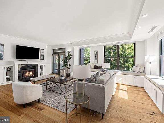 Great PRICE ADJUSTMENT on this spectacular upgraded large corner flat with one of the best layouts in this pet friendly building. Walk in and be immediately invited into the grand, 30-foot living/great room with south & east exposures & a balcony offering lovely views of leafy trees all around. Handsome wide-plank hickory floors throughout. Wrap-around, cushioned window seats w/ great storage cabinets below are perfect for extra seating when entertaining or just cozying up with a book to enjoy the gas fireplace. A dining area with ample space to seat 6-8 is open yet distinct. Updated, well-equipped kitchen with island, breakfast bar, pantry closet, and upgraded stainless appliances & custom lighting. The primary bedroom suite includes a glamorous bath w/ steam shower, heated floors, & Toto bidet plus a large, fitted, walk-in closet. There is a large 2nd bedroom, lovely hall bath with heated floors, and hall washer/dryer to complete the unit. The Columbia Residences has a 24-hour concierge, security, pool, fitness center, & conference/party rooms. One Parking Space plus a Storage Room convey with the apartment. Direct access to Trader Joe's from parking garage!