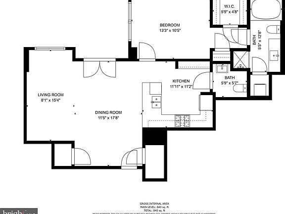 - Total interior livable area: 840 sqft