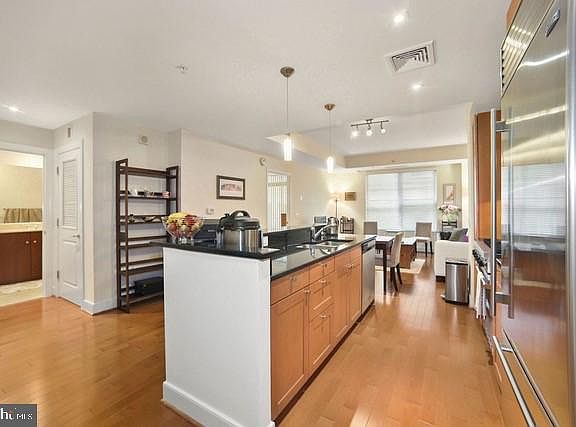 Distinctive and spacious one-bedroom condo in the coveted Columbia Residences in convenient West End. Thoughtful, versatile floor plan designed for comfort and practical everyday living. Main living area offers space ideally suited for a home office. Additionally, the flexible layout of the main living area accommodates a variety of configurations, allowing for separate dining area. Well-proportioned bedroom suite features a deep walk-in closet, additional generous closet, and a marble, dual-entry full bath. Balcony off bedroom suite accessible through sliding glass door. Kitchen has beautiful black granite countertops, Sub-Zero refrigerator, and Viking stove, built-in microwave and dishwasher, plus plenty of cabinet space. Parking space and storage unit included. This sought-after condominium community is situated atop a beautifully landscaped parcel that is just blocks from George Washington University, downtown DC, Georgetown, Foggy Bottom, and Dupont Circle. Metro stop conveniently located less than four blocks away. Amenities abound in this gracious historic property: Concierge service plus 24-hour security, rooftop pool, three community rooms, well-appointed fitness center, beautiful lobby, and in-building access to Trader Joe's.