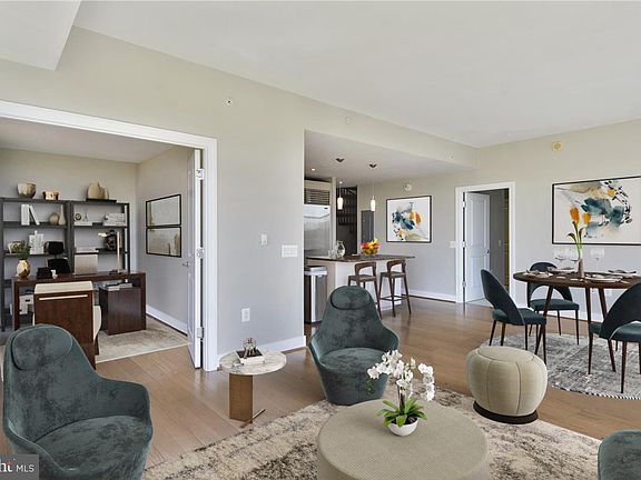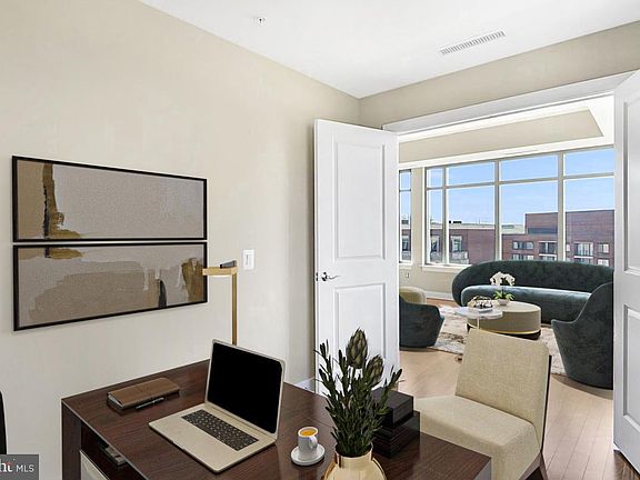 The Columbia: One of-a-kind stunning, two-level Penthouse. 1,650 sq ft w/private terrace spanning 500 sq ft with spanning breathtaking views of sunset, Georgetown & National Cathedral. Main level has incredible views, 180-degree windows, 2BR, upscale marble bathrooms, plus separate den, upscale appliances, marble counters. An elegant spiral staircase leads to a glorious upstairs separate great room featuring floor to ceiling windows leading to private outdoor terrace & installed gas line for approved outdoor balcony grill and stunning large columns. Ask about second garage parking space, if needed. The Columbia includes 24-hour concierge, guest suites, fitness center, community room, swimming pool, and Trader Joe's grocery store downstairs. This unit is truly stunning, and you won't want to miss this opportunity.