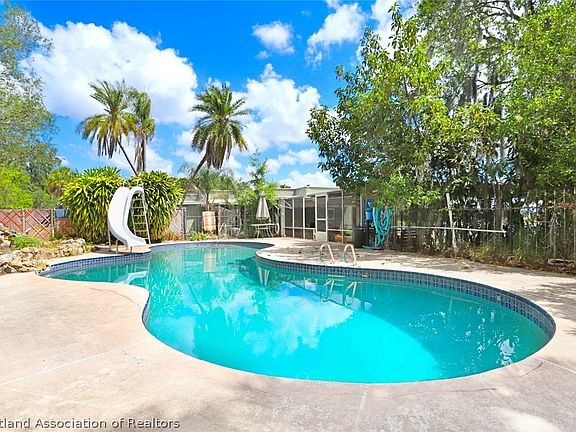 Welcome to your own slice of paradise nestled on the shores of Lake Lillian in Avon Park, Florida. This enchanting four-bedroom, two-bathroom home combines the allure of Art Deco styling with the tranquility of a tropical retreat. From the moment you arrive, you'll be captivated by the lush landscaping, sparkling pool with a slide, and the promise of endless outdoor enjoyment.