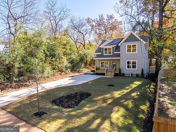 Welcome to your modern sanctuary where everyday living feels easy, entertaining comes naturally. This brand-new construction home sits on a gorgeous lot, with a welcoming front porch that invites slow mornings and friendly hellos. Step inside to an open concept layout that delivers the ultimate entertainer's flow. The expansive kitchen is the star of the show with a grand island that seats a crowd for coffee or cocktails. Abundant cabinetry keeps everything tidy plus a walk-in pantry for all your hosting essentials. A gas range with vent hood, a pot filler is ready for every culinary adventure. There is even a water filler for your dog bowl which makes life a little more joyful for everyone. A full bedroom and bath on main level, offers the flexibility you need for overnight guests, office or in law suite. Tucked just off the kitchen a full-size laundry room with valuable extra storage and counter for folding. The upper level is all about comfort. Your primary retreat is a true getaway with a spa like bath which features dual vanities, a separate shower and a deep soaking tub for the moments that call for relaxation. The huge walk-in closet keeps wardrobe dreams organized. Two additional bedrooms include a convenient jack and jill bathroom, ideal for family or friends. Take the fun outdoors to the deck that is designed for grilling and gathering with plenty of space for everyone to enjoy. The fenced yard lets pups and playtime take center state. Everyday conveniences are just around the corner with I-20 close by plus easy access to East Lake Golf course and favorites like East Lake Publix and YMCA. Your dream of a modern comfort and spirited living starts right here.