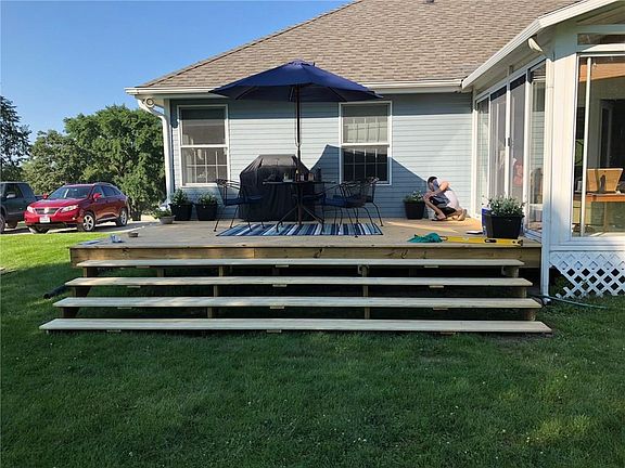 This park-like setting, 2 miles from Winterset, is ready to move in. Over 2200 sq ft of finished living space features updated wood floors, trim, deck, paint and a totally finished basement. The living room has vaulted ceilings with a cozy fireplace. The house has a split floor plan with the master on one side and 2 more bedrooms with a bath between them on the other side of the home. All appliances in the home stay including a 3 year old HE large capacity washer and dryer. There is a 2 car attached garage and a 2+car metal out building on the property(no electric). The basement has been recently finished with a family room, bathroom, 1 bedroom plus 1 nonconforming bedroom that would make a great office/toyroom. The sunroom on the back of the house overlooks the fully stocked pond with bass, catfish and blue gill. Don't miss out on seeing the property before its gone! RECENTLY UPDATED KITCHEN WITH NEW COUNTERTOPS AND SINK. LAUNDRY AREA HAS BEEN REMODELED ALSO.