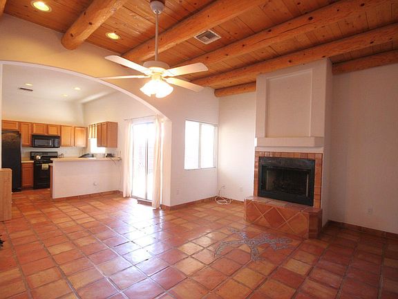 1mi to UA!! This new construction 4 BR/2BA Sante Fe style house is located on the most direct route into the University. This home's 4 bedrooms were designed with a privacy-oriented layout, high ceilings with fans in each room. There is a saltillo-tiled fireplace and hearth in the living room with 10' pine-beam ceilings. Both baths have upgraded ceramic tile shower/bath areas with saltillo floors in neutral beige colors. The kitchen has upgraded black glass appliances with a large side-by-side refrigerator, built-in microwave, dishwasher, disposal, gourmet gas stove, and eat-in counter. There is a laundry area with a new washer and dryer. This house has frigid AC. The floors are carpeted in off-white in the bedrooms and the rest of the house has Saltillo tile. Out back is a covered patio and fenced private yard. 2-car carport to keep cars cool in the hot AZ sun. This is no cookie-cutter home! Agent/Owner 12 month
