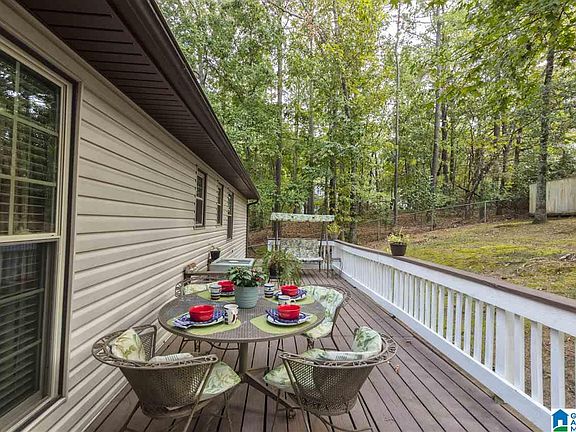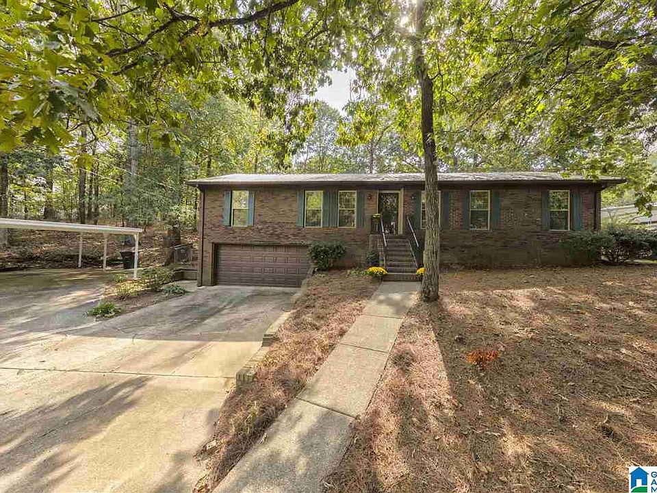 One level home located in Oak Mountain school district. Newly upgraded kitchen with granite countertops and stainless steel appliances. Hardwoods in formal living and dining areas as well as kitchen and family room that features gas fireplace for cozy evenings, carpet in bedrooms and tile in foyer and bathrooms. Master suite with bath and 2 other spacious bedrooms. Full unfinished basement including 2 car garage. Additional detached 2 car carport and a parking pad for RV parking. Enjoy outdoor living on the large rear deck. Fenced yard for children and pets. Large corner lot.