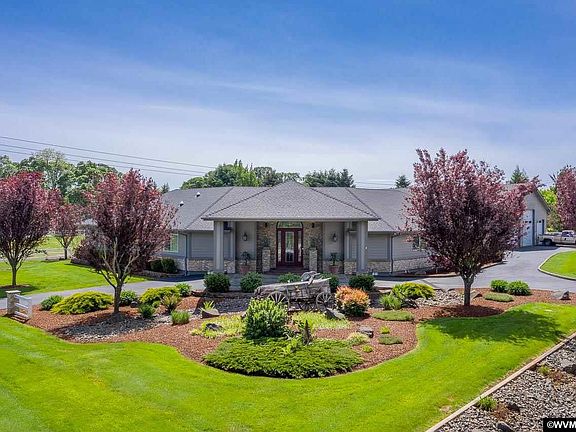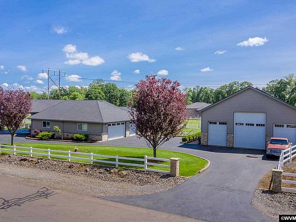Spectacular Custom Home on fully fenced 2 acres just outside of Salem. This property was built to entertain and has been used for weddings and gatherings. Gourmet Kitchen with slab granite counter tops and eat bar. Spacious living room with vaulted ceilings and beautiful real wood floors. Immaculate master with larger shower with Travertine tile and amazing corner tub. Covered outdoor full kitchen, BBQ and gas fireplace, stamped concrete. RV shop 38x70 and fits 42ft RV and has bonus room w/full bath in shop