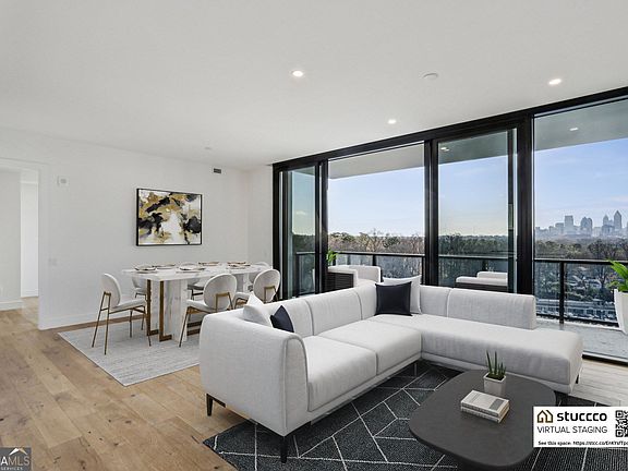 Experience unparallel elegance and sophistication in this exquisite two bedroom + den three full baths luxury high-rise condo, located in The Dillon, Buckhead's newest premier luxury condominiums in the heart of the city's most prestigious neighborhood. This spacious residence offers breathtaking panoramic views through floor-to-ceiling windows, creating an abundance of natural light. The designer kitchen is a chef's dream, featuring top-of-the-line stainless steel appliances, quartz countertops, , custom cabinetry, and sleek waterfall island perfect for entertaining. Huge balcony overlooking pool area and views of downtown Atlanta. The Expansive primary suite boasts a spa inspired ensuite with a deep soaking tub, glass-enclosed rainfall shower, glass enclosed water closet, double vanities and double closets to be fitted with custom cabinetry including drawers. The Dillon premium amenities include 24-hour concierge, Valet, pool, cabanas, state-of-the-art fitness center, fenced dog walk with washing station, grilling station, media room, simulated game room, business center with conference room and office suites, quiet lounge room, pickleball court courtyard, redefines luxury with its world-class amenities. Unwind in the exclusive speakeasy, take a refreshing dip in the resort-style pool or enjoy a game at the pickleball courts. Electronic window treatments and custom closet shelving ordered and to be installed. Situated near world-class dining, luxury shopping, cultural attractions, golf course, this condo offers the ultimate urban lifestyle. Two reserved covered parking spaces one of which is pre-wired for an EV charger. Easy access to Midtown, Downtown, Highways and parks. Schedule a tour today! Copyright Georgia MLS. All rights reserved. Information is deemed reliable but not guaranteed.