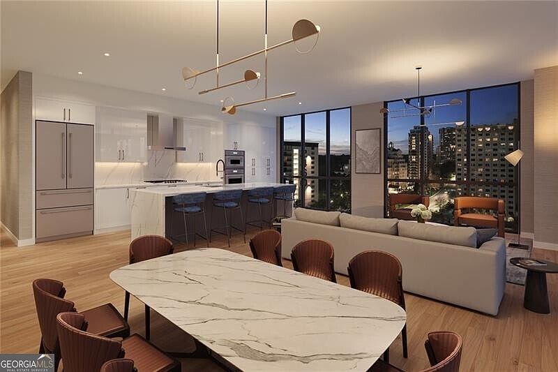 This exclusive residence at The Dillon is one of a select few available in the only new condominium being delivered in Buckhead this year. Rising 18 levels above Peachtree Road, The Dillon is nearing construction completion with closings scheduled to begin Q4 2024. This designer appointed residence will be move-in ready with exceptional finishes and premium appliances. Floorplans at The Dillon range from 1,400 to nearly 3,700 sq. ft. High ceilings with floor-to-ceiling windows and wide terraces capture breathtaking panoramic views of Buckhead, Midtown/Downtown Atlanta, and the iconic treetop canopy. An elegant arrival motor court will welcome you home with private and concierge services, and you'll enjoy an exceptional array of resort-style amenities. The 4th level elevated amenity deck will feature a pickleball court, swimming pool, private cabanas, firepit gathering spaces and a fenced dog park. Inside, The Hub (an innovative co-workspace) is joined by an elegant Resident's Lounge, Game Simulator Room, private Theater and an eclectic Speakeasy for resident enjoyment. A convenient Buckhead lifestyle may be the best feature of all with access to the BeltLine, top restaurants, and an abundance of conveniences at Peachtree Battle Shopping Center.