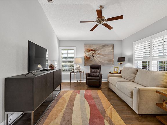 Tastefully updated 4-bedroom plus den, 3-bath, 3-car garage pool home located just minutes from Tradition and I-95. This spacious, open floor plan features new luxury high-end laminate flooring throughout. The beautifully remodeled eat-in kitchen offers quartz countertops, breakfast bar, pantry, and newer appliances. The primary suite includes two walk-in closets and a fully remodeled bath with oversized shower, dual vanities, and bidet. Guest bathrooms, including the cabana bath, have also been remodeled. Sliding glass doors from the living room open to a private tropical oasis featuring a pool, extended paver patio, fire pit, fencing, and lush landscaping for maximum privacy. Recent upgrades include a new A/C system and water heater (2025). Conveniently located near shopping, dining, 95