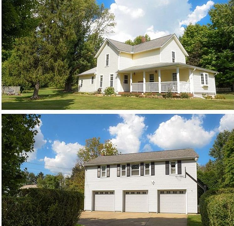 Take a look & enjoy everything this fantastic home & property in Highland School District has to offer. 2425 Sharon Copley Rd is a 3 bedroom , 2 bath home that has been updated w/beautiful details &meticulously maintained. This home sits on 5 private acres with walking trails, a fire pit, garden areas & a new pool. Add the Carriage house with a 1,900 sq ft 3 bedroom, 1 bath, kitchen & living room & additional 3rd floor attic space that sits above a 3 car garage that's a car enthusiasts dream! The garage has nature stone floors, heat, air conditioning & an elevator to take you to the apartment above. The main house boasts beautiful engineered wood floors in the updated kitchen w/superior quality cabinets & concrete counter tops. Cozy family room & first floor laundry! The master bedroom has hardwood floors & 3 closets. Upstairs you will find a full updated bathroom with tile floors & large shower. Bedrooms are perfectly sized. In the lower level nature stone floors are revealed w/a wood burning stove. Sit outside & watch the sunset on the composite porch. Updates in main house include: Porch 2013, Kitchen 2007, windows 2007, carpet 2010, Heat pump and Air 2003, Roof 1998, gutters 2007, asphalt driveway 2013. Carriage House; Roof 1998, windows 2012, gutters 2007. Pool 2016. Home warranty included for the lucky new owner. If you have been searching for a great home, plenty of land, additional living space to rent or for family, & a fabulous garage, this is it!!