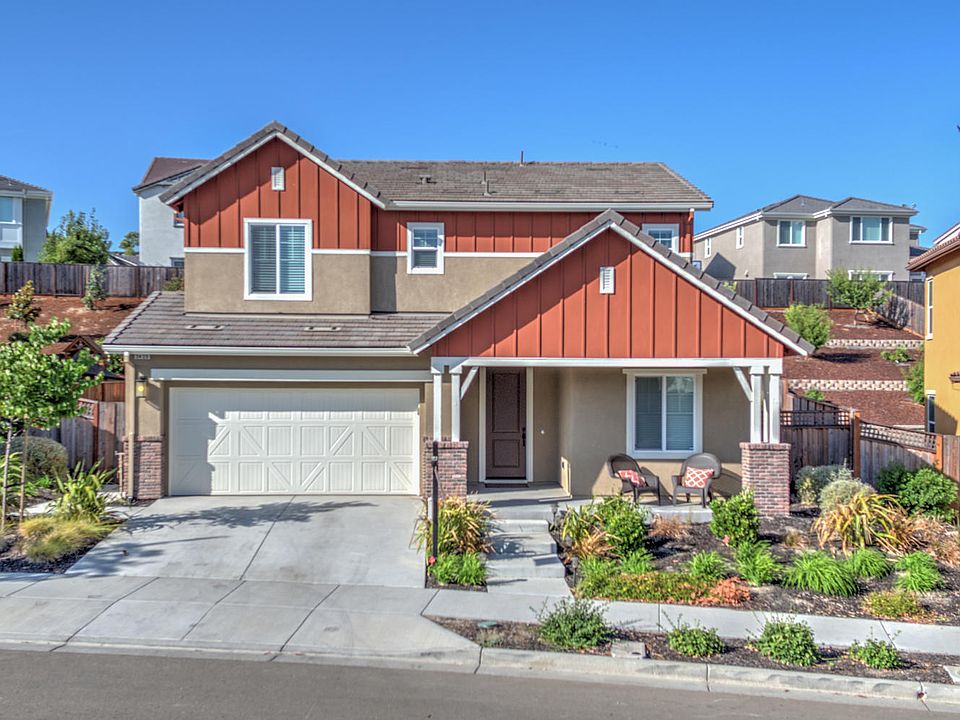 Gorgeous & Modern Home in a Highly desirable Neighborhood Positano. Only 4 years old home offers 4 bedrooms, 3 bathrooms and a big upstairs loft. The property has been upgraded with Hardwood floors, stainless steel appliances, upgraded carpets, granite counter tops, cherry kitchen cabinets, breakfast nook, wired for surround sound, and a fireplace. Home has a Tankless Water Heater. The Master bedroom has an en-suite bathroom that is privately tucked away on the 2nd floor on the right side of the home. The home has a Full downstairs bedroom and bathroom which is ideal for in-laws or guests. This home truly has everything you are looking for and has been meticulously maintained. Top rated school district. The home is walking distance to the Jordan Ranch park. Close to 580 freeway access, Bart & ACE trains, many restaurants, shops and Theatre for entertainment. Home is also near the San Francisco Outlet, Target, Trader Joes and Whole Foods.