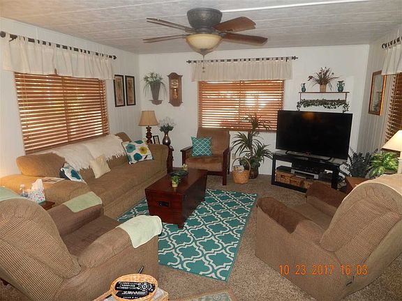 A Single to a Doublewide! Added Family Room, Bedroom, 2nd Bath, Office, Hobby Room & Laundry area. Greet your guests in this cozy 'Social' Courtyard. Private entertaining Back Patio. RV Port! 2 Site Built Sheds. AZ Room w/Air, French Door & Skylite. Central A/C & window A/C's. Clubhouse w/Activities & Community Pool. Popular 55+ Subdivision where you OWN THE LOT! Move In & Enjoy! HOA Dues of $375 a yr. includes Basic Cable TV!! Furniture NEGOTIABLE. You'll love all this home has to Offer!!