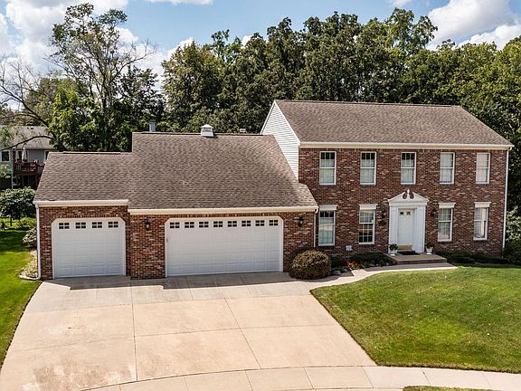A well maintained, stately, traditional two story home nestled in a quiet cul-de-sac, and sits on a wooded 1/3 acre lot. An impressive list of features, including cherry crown molding, chair rail and cabinetry. A main floor laundry room, and half bath for added convenience. Main floor family room with gas fireplace and built-in bookcases, formal and informal dining rooms. The kitchen features stainless appliances, cherry cabinets, and granite countertops. Upstairs you'll find two full bathrooms, 3 generous size bedrooms, an owner's suite offering a walk-in closet, and second closet for your folded items, a huge bathroom with a jetted tub, walk-in shower, double sinks, granite countertops, and tile floors. The walkout lower level is ready to be finished with transit heat in the floor, an additional bathroom and wet bar roughed in. Outside you have a 900 square foot 3 car garage with attic storage, a 19x14 composite deck, a 15x23 patio and a 11x13 fenced concrete kennel. Buyers will appreciate that the home has been pre-inspected, a Radon mitigation system has already been installed and will come with a one year HSA Home Warranty.