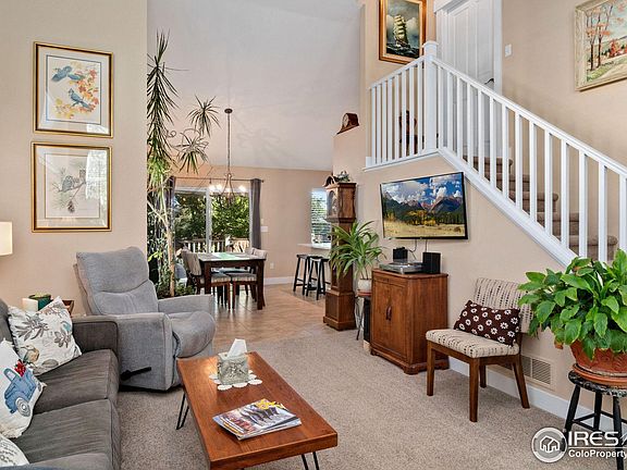 Step inside this charming light filled home located in the desirable Indian Peaks neighborhood. Located only minutes from downtown Lafayette. This home offers main level living with a finished basement and a upper level bonus/bedroom. The open kitchen has been updated with quartz countertops, stainless steal appliances, and beautiful cherry wood cabinets. The finished basement offers a large rec room, family room with a fireplace, bedroom and bathroom with a large stand alone tub. The upper level bedroom/bonus room can easily be conforming with the addition of a closet. In the stunning backyard you will find beautiful landscaping, large trees, a covered back porch and a cement patio to enjoy these beautiful Colorado days. Home has very low utility bills and has numerous updates that have been done. Including, insulated garage and a new water softener/purifier installed in Jan 2023. No snow shoveling in the winter necessary as there are no sidewalks!
