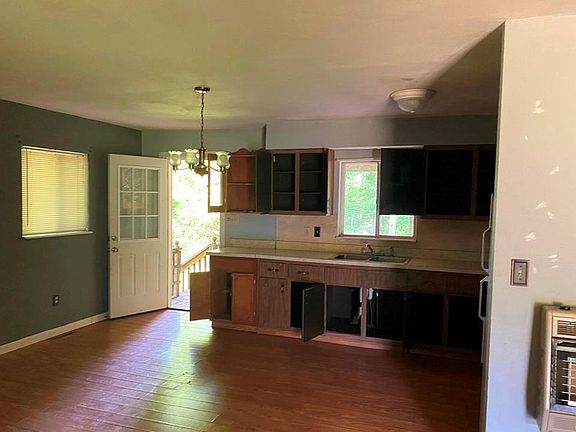 This rustic style property sets in a quit, secluded, tree-lined setting with just over five acres of land. Including a two bedroom, one bathroom home with large covered front porch, spacious covered back deck, and a HUGE detached two car garage/workshop with a loft area. Call today for additional information or to schedule a showing. SpecialListingConditions: Foreclosure