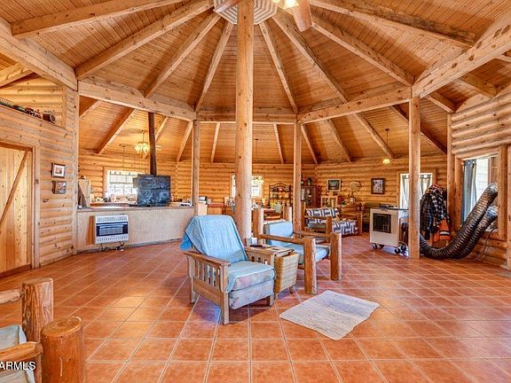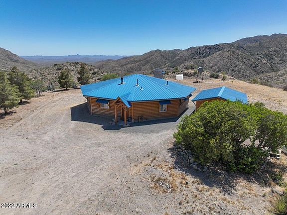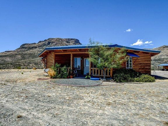 Bring your horses, mules or donkeys along with other toys!!! Sitting on 19 acres of land, this charming 2 bed/2 bath log cabin kit home captures the views of Wickenburg lights at night and the morning sunrises over Rich Hill famous for the quality and quantity of gold that has been found in its vicinity. Antelope Peak is an astounding backdrop as you drive up to this property. Bordered by Arizona State Trust Land to the north insures your peace and privacy in your backyard.