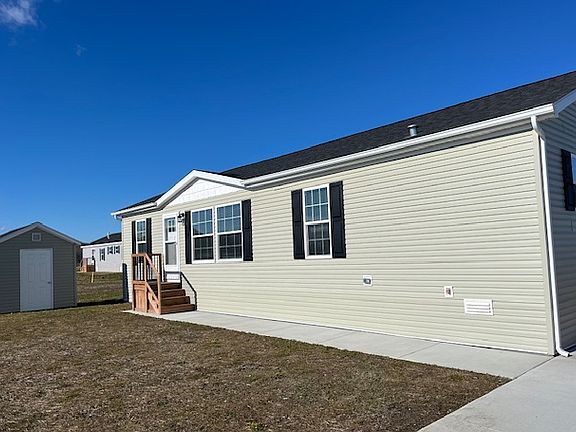 You will love this amazing new home built by Champion Homes. This home is phenomenal and you will love the open floor plan. The kitchen is absolutely stunning with a beautiful ceramic backsplash, stainless farm style sink complete with garbage disposal and arched faucet and sprayer. You will also notice ample cupboard space and a nice kitchen island. All Whirlpool black stainless appliances which includes a gas range, refrigerator with water and ice dispenser, and dishwasher. The huge living room is nice and bright as the windows allow for natural lighting. You will also notice recessed lighting through the entire home, hunter ceiling fans in the living room and primary bedroom. The primary bedroom has a huge walk in closet, and the best part is the amazing primary bath. The ceramic walk in shower has separate controls for the rain head and hand shower, both with separate controls. The dual porcelain sinks capped of nicely with two incredible back lit mirrors.