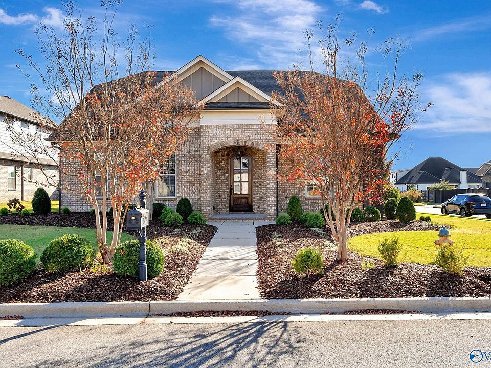 Custom built home by Jimmy Bryan! This upscale full brick home in the beautiful Old Stone community is sure to please anyone with the high ceilings, wood floors, plantation shutters and tons of trim. A cozy fireplace is the focal point in the attractive family room. Invite the extended family to gather in the oversized kitchen and dining area featuring wood floors, miles of granite & pantry. Relax in the spacious primary bedroom with large closet and beautiful ensuite bath. It also has access to the screened patio. Two additional bedrooms and 2nd bath make for plenty of room. Yard goes all the way back to neighbor's fence! Old Stone amenities include pool and clubhouse.