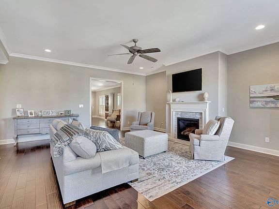 - Features: 10’ + Ceiling, Ceiling Fan(s), Crown Molding, Fireplace, Wood Floor