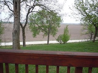 This beautiful 1 1/2 story earth contact home on 4.68 acres has a magnificent view overlooking the river valley and abutts Oregon Trail State Park. Spacious living area includes four bedrooms (1 non-conforming), two bathrooms, eat-in kitchen with pantry , dining room (currently being used as office), laundry room, and large living room open to loft. Master bedroom has his and hers walk-in closets and separate vanities with new sinks and whirlpool tub. Detached 4 car garage includes a shop area. Outside hydrants use well water.