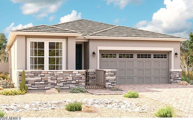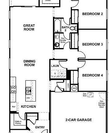 Everything's just where you need it in this charming ranch-style floor plan. An inviting kitchen with a walk-in pantry and generous eat-in island flows into a charming dining room—and beyond that, the great room. You'll also enjoy a stylish sliding-glass door, providing access to a relaxing covered patio.