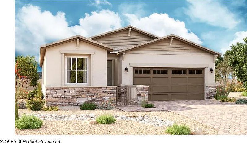 Explore this exceptional Peridot home, on a homesite boasting driveway pavers and front yard landscaping. Included features: an inviting covered entry; an open dining area; a well-appointed kitchen offering quartz countertops, 42'' cabinets, stainless-steel appliances, a center meet slider.