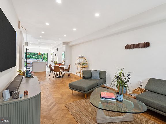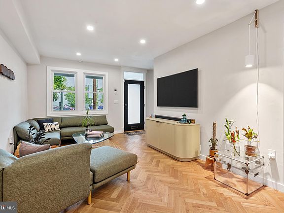 Best in Brookland! This stunning three-level masterpiece embodies the perfect marriage of custom high-end finishes, tech-savvy brilliance, and classic DC charm. Incredibly spacious, bright, and airy, the open-concept main level boasts breathtaking white oak herringbone floors reclaimed from a residence in England & an obsession-worthy kitchen with sleek European style cabinetry, white quartz countertops & waterfall island, stainless steel appliances, & artisan tile backsplash. Indoor and outdoor space unite thanks to panoramic tri-fold glass doors that open to the fabulous deck, flagstone terrace, and secure parking. The two-story addition allows for an amazing primary bedroom with a dedicated sitting area perfect for a home office or dressing room, a gorgeous sky-lit bathroom with floating vanity and soaking tub, and a large second bedroom with beautifully refinished original red pine hardwoods. The fully-finished lower level with outside access & full bath offers the ideal location to host game night or use as a bonus space for guests. Easily the smartest home in Northeast, tech-forward amenities include a cash-positive solar panel system, high speed EV charger, room-specific Ecobee thermostat control, Google Nest exterior & interior lighting control, Simplisafe security system, and automatic unlocking August lock. New high-efficiency windows, 2025 furnace, & a coveted main level pocket-door powder room are only a few of the many recent upgrades and renovations. With its prime location, enjoy an easy walk to Metro, Catholic University, Trader Joes, the Metropolitan Branch Trail, & Edgewood Recreation Center. Steps to Metrobar, Kraken Kourts, & Alamo Drafthouse! OPEN SUN, 1-3pm