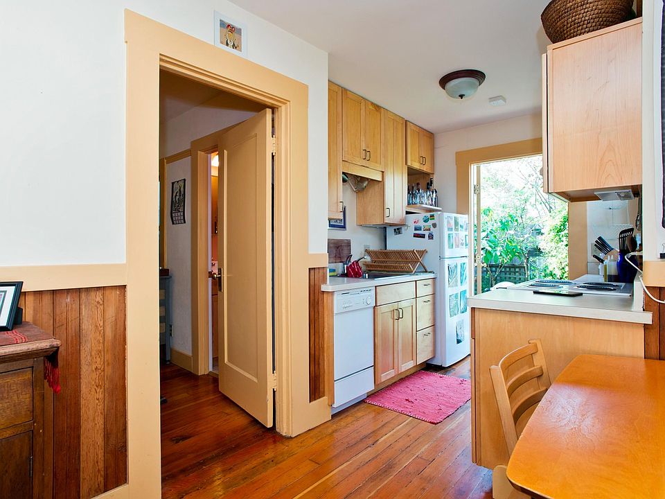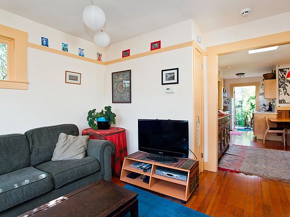 Sunny, unfurnished, free-standing cottage located on a bike blvd. There is a private deck in the rear and no shared walls. Available 10/1. 1BR, 1BA, 500 square feet. Hardwood floors throughout, larger yard with fruit trees shared with two neighbors, shared washer/dryer on property, dishwasher in unit, heat pump (AC/heat), bath tub. Quiet neighborhood, great neighbors. Cafe, restaurants and shops right around the corner. 10m walk to Berkeley Bowl West grocery store. On a bike blvd. Close to freeways and Bay Bridge. Plentiful street parking. Trash and water included. PG&E + internet is not included. First and last month rent to move in.