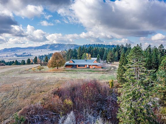 Discover your own slice of mid-century modern paradise perched atop the picturesque Paradise Ridge. Steeped in family history for over 45 years, this custom-built home radiates incredible craftsmanship and timeless charm. Resting on a generous 10-acre lot, this gem offers breathtaking panoramic views, space for horses, and a private pond. Properties like this are a rare find! This distinctive 4-bed, 3-bath home provides over 3,500 sq.ft feet of single-level living, embodying the essence of mid-century modern architecture. With an additional 1,500 sq.ft of usable space downstairs, this home opens the door to a world of creativity for hobbyists and craftsmen with the ideal space for turning your dreams into reality. As an added bonus, this property includes a unique piece of history in the form of an original homestead house, offering a glimpse into the region's heritage and character. Embrace the tranquility of rural living while enjoying the convenience of being just a short drive from Moscow.