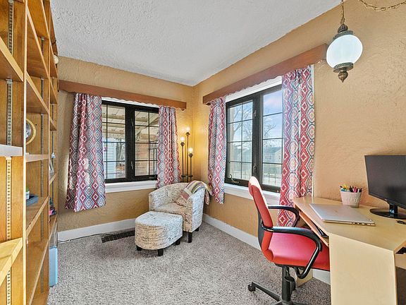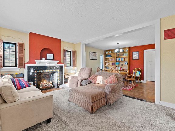 Check out this charming Spanish-style 2 bedroom, 2 bathroom home with a partially finished basement! With right at 1,000 square feet of living space, you'll love the cozy front den, warm family room with a fireplace (sealed shut), and the overall convenient layout of the main level. All appliances can be negotiated to stay including the refrigerator and dehumidifier in the basement. You can enjoy the hardwood floors in the bedrooms & dining area while there is tile flooring in the kitchen. The vinyl windows that let in plenty of natural light any time of day but you can step outside to enjoy the outdoors under the covered patio too. The 1995 90% efficiency gas-forced air furnace with central AC is in the basement along with a newer water heater as well as with a washer, dryer, and laundry folding table. The HVAC ducts were cleaned in 2021. The back yard is mostly fenced in with chain link fencing. This home has been pre-inspected for you peace of mind. Don't miss out on this opportunity to own this unique, affordable home conveniently located near central Fort Wayne!