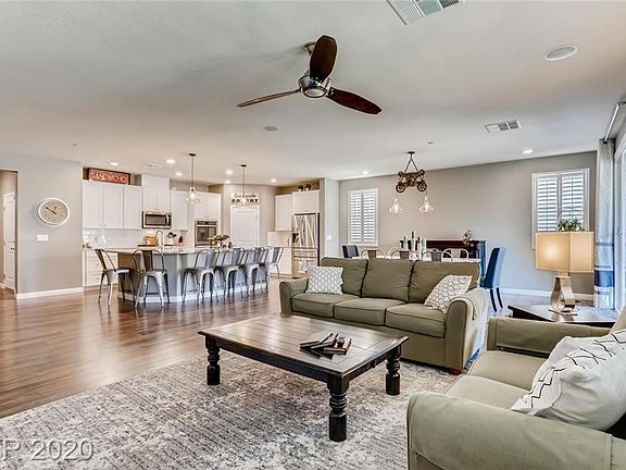 INSPIRADA LIFESTYLE - LOCATION, OVER $50,000 IN OPTIONS & UPGRADES! 3 generous bedrooms, with office/den or could be 4th brm Luxury living in a gated one level stunning model-like home, in the beautiful master-planned community of Inspirada. From luxury hardwood laminate flooring and plantation shutters throughout, a masters kitchen with double oven, gas cook top and the largest one slab, no seam granite island counter top, with stainless steel appliances, and self close cabinets & drawers. Spacious family room and brasserie style dining room, brings informality to this classic home. The primary bedroom and en-suite is totally amazing and functional, from being a retreat with his and hers sinks, walkin closets. All the bedrooms have ceiling fans. Entertaining is a breeze with the outdoor full length covered patio and beautifully landscaped, park-like backyard. Extra swing garage making interior parking for 3 cars, all garages insulated. This gorgeous home is guaranteed to impress!!