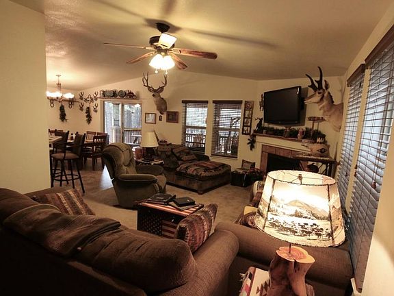 You will fall in love with this 2011 Cavco Durango, 3BR/2BA home nestled under towering ponderosa pines, featuring vaulted ceilings, fireplace, huge 12x28 covered deck, pipe rail fencing in the back yard, trex decking, storage sheds, and so much more. Beat the heat only two hours from the Valley, 30 degrees cooler and four-season weather.