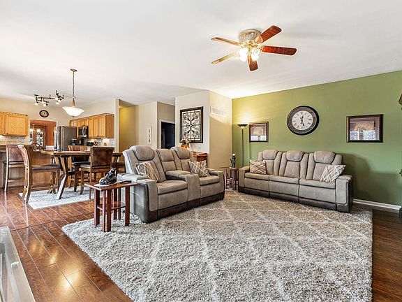 CONTINGENT ON SALE/CLOSE 48hr Kickout STILL ACCEPTING OFFERS -LOTS OF UPGRADES *Quick Closing Available* Quiet cul-de-sac w/beautiful landscape & new driveway. Step into gorgeous Laminate floors, 2022 carpet/new paint. Soaring ceiling in foyer/living rm w/remote blinds. Dining rm w/Wainscot. Kitchen boasts Stainless appliances, double ovens, pull-outs, backsplash, granite, under cabinet lighting, bfast bar, pantry & fridge stays. Hearth/family rm off kitchen w/cozy gas fireplace. Main level laundry w/full-size W/D included. Upstairs find an office/den, master suite w/see thru fireplace to lux bath & walk-in closet w/organizer. 3 more nice-sized bedrms down hall giving split bedrm feel. Finished walk-out lower level updated in 2020 w/3rd fireplace (electric w/remote), 2 sitting areas, wet bar, full bath & 5th bedrm. Lg patio w/4-person 30-jet hot tub, freshly painted deck w/composite railing & solar light caps, landscaped for privacy, black aluminum fence, 3 car garage w/insulated doors