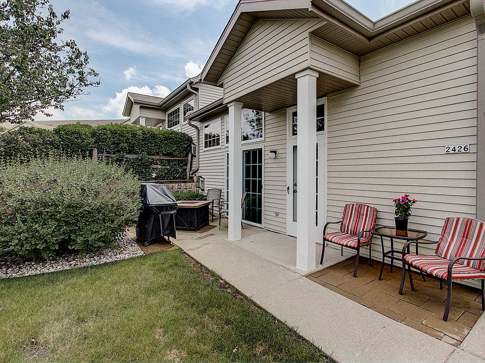 Move right in and enjoy! This sharp end unit condo offers a spacious floor plan and many recent updates. Enter into the living room with attractive updated flooring, gas fireplace, soaring ceiling, and great natural light. Eat in kitchen features a plenty of counter space, huge pantry, and breakfast bar. The versatile floor plan has options for a master bedroom on first and second floor. Upstairs you'll find bedrooms 2 and 3, spacious bath, and a great den/office space. Great closet and storage space throughout. All windows replaced July 2019! Other recent updates include furnace, water softener, and garage door. The location is very convenient to amenities, parks, walking trails, and the Fox River. Welcome home!