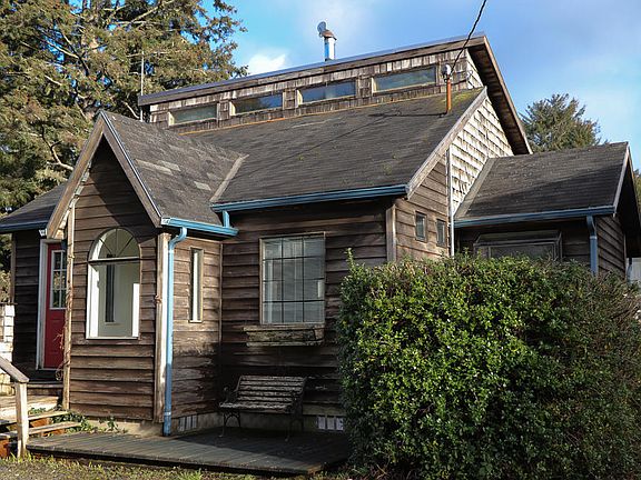 Large .71 acre parcel with two structures. Front home has one bedroom/ one bath, kitchen and living room. Back unit has large open room with one bath and laundry facilities. A garage is attached to back unit. Fenced yard with creek running through property. Great getaway close to ocean and sandy beach.