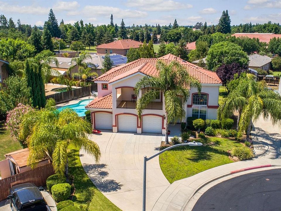 Stunning Mediterranean style home w/5BRs and 3.5 BAs. Welcome to your new home to make many happy memories! Gourmet chef's kitchen features granite counters, gas cooktop, pantry and SS fridge. Enjoy your morning coffee in the spacious breakfast nook that looks out into the enormous backyard. Natural light illuminates the formal LR, DR, & Fam RM. Downstairs has a powder room, laundry rm incl washer & dryer and guest BR and full bath. Ceiling fans throughout. 4 Additional BRs upstairs along w/the master bedroom. One of the BRs has it's own balcony and can be used as a media room. Master ensuite is a relaxing retreat w/a sitting area, fireplace, jacuzzi tub, shower & balcony to appreciate the backyd. Whole house fan keeps the home cool while saving $ on your energy bill. Family gatherings are a cinch in the park-like, beautifully landscaped backyard. Lg sparkling pool, BBQ, covered patio & 3 car garage complete this perfect home!