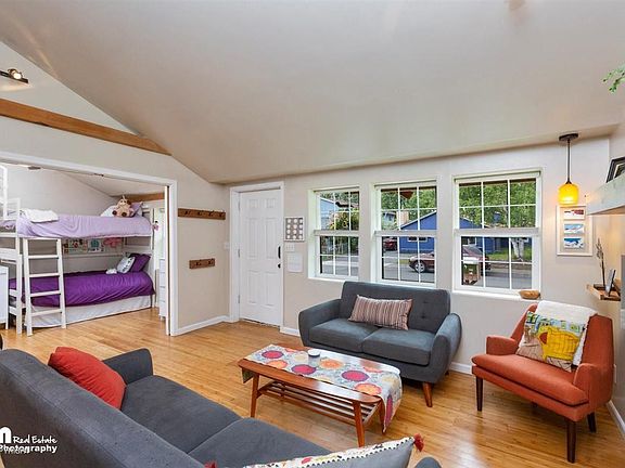 Modern remodel in an open floorplan ranch on a nice corner lot. With vaulted ceillings/exposed wood beams, large kitchen with breakfast bar/separate dining room/pantry, three bedrooms -- two with lofts, one could be a flex space -- bamboo flooring and radiant heat throughout. Back yard is fenced, fully south-facing and has a huge storage shed. Near shopping, trails, U-Med and Fire Island bakery.
