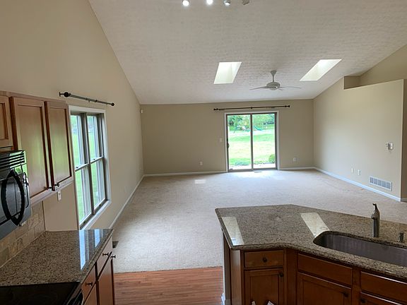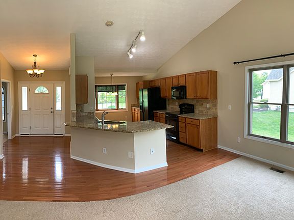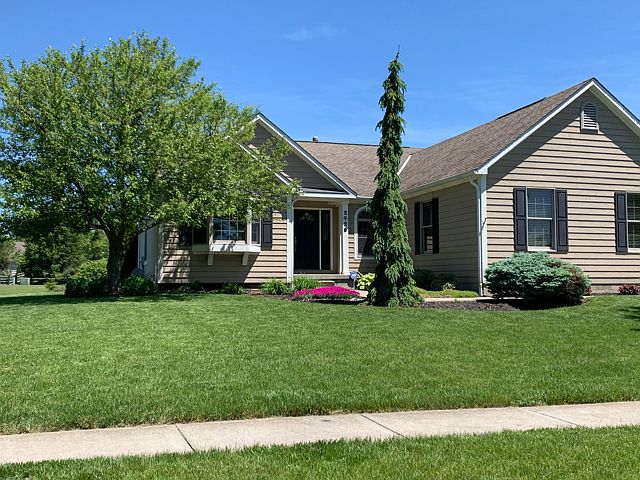 Beautiful ranch home in the Meadows at Cheshire subdivision with a spacious .447 acre corner lot. Minutes away from Johnnycake Corners Elementary, Berkshire Middle, and Olentangy Berline HS. Cathedral ceilings and sky lights in great room open to kitchen with eating area. Hardwood floors in foyer and kitchen. 3 bedroom, 2 full baths and the master bedroom has cathedral ceilings to private bath and soaking tub with walk in closet. Utility room has washer/dryer hookups Finished bonus room in basement 2 car side load garage Concrete stamped patio with built in fire pit with spacious yard. No pets! Non smoking home Renter is responsible for all utilities. Lease term is yearly.