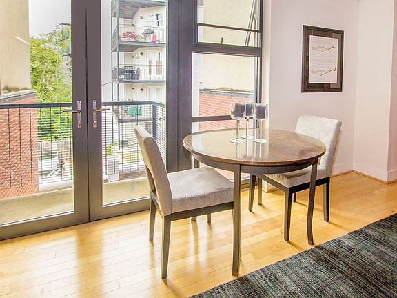 Sunny corner unit in the heart of Adams Morgan near restaurants, shops & Harris Teeter. Dramatic open living area w/hd flrs, 10 ft ceilings & a balcony. Perfect for entertaining w/ lots of seating in the living rm, eat in area, ample kitchen w/large Quartz counter top & bar stools. Master bedrm is bright w/ windows on 2 sides, updated ba. Washer/dryer in unit, pets allowed & designated pkg space