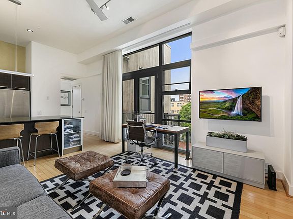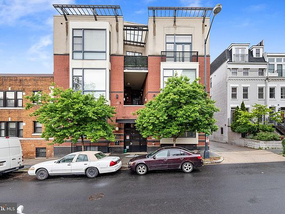 Top floor unit with private roof deck. High ceilings and an open floor plan flood this property with light. Large kitchen with black quartz counters, stainless steel appliances, gas cooking, and plenty of cabinet space, plus a pantry closet. The spacious bedroom amply accommodates a king-sized bed and has both west and east facing windows. Western light floods the sleek bathroom and its frameless glass and ceramic shower enclosure. The large closet at the front door is a converted powder room that has had the fixtures removed; it is easily changed back. The unit enjoys two great outdoor spaces. Off the living area, through a floor-to-ceiling wall of glass, is a north-facing balcony that is perfect for reading or morning coffee. And the best is up top! A dedicated, private roof deck with 360-degree views of the city is the perfect place for outdoor gathering with friends while you take in the skyline, including a view of the Washington Monument. The property includes a secured parking space along the side of the building. Stacked washer and dryer in the unit. Pet-friendly. The Adams Morgan location can’t be beat, with restaurants, shopping and metro all within a few blocks. Offers due Sunday by 6:00.