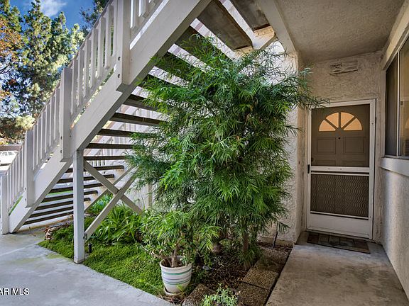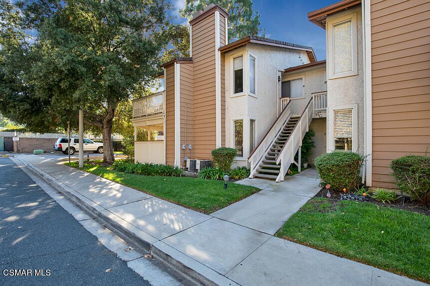 Beautiful 2-bedroom, 1-bath condo in the heart of Thousand Oaks! Upgraded and desirable downstairs, end unit with an excellent location across from a beautiful, tree-lined park! (Each unit has one carport space, this one is #136 plus ample street parking). Open floor plan. Dining room and main bedroom have sliding-glass doors to large wrap-around patio that includes a storage closet! Large, upgraded kitchen w/breakfast bar has granite countertops, travertine backsplash, custom cabinetry, tile floors, and porcelain sink. Kitchen includes high-end Bosch dishwasher, LG refrigerator, Maytag range, and GE microwave. Wood-burning fireplace in living room. Ceiling fans in dining area and master bedroom. Upgraded bathroom w/custom cabinetry, tile shower w/dual shower head. Walk-in closet in main bedroom has mirrored doors. Guest bedroom (or office!) has mirrored wardrobe sliders plus above-closet cabinets for great storage! Indoor laundry includes high-efficiency stacked washer & dryer included. HOA dues include community pool, spa, exterior maintenance, all water, sewer, and trash. Conveniently close to The Lakes center/Civic Arts Plaza, 2 parks, and award-winning schools â'' all incredibly close!