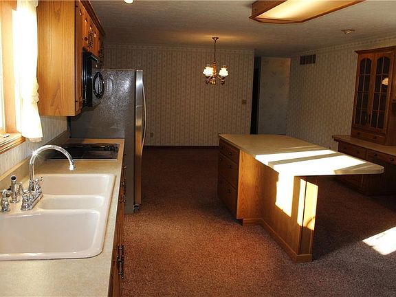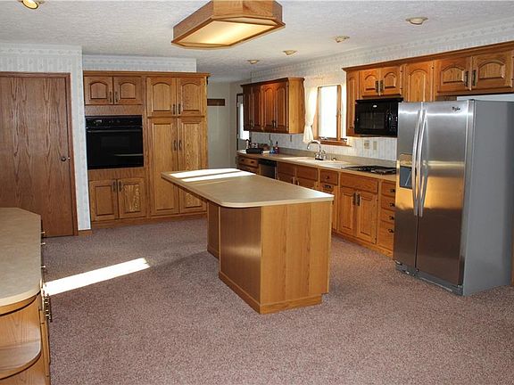 Custom built 3-bedroom, 2-full bath, 2-half bath, ranch on 6-acres with full finished basement. Spacious great room with vaulted ceiling, and stone fireplace. Kitchen offers oak cabinetry, center island, and large pantry. Formal dining area open to kitchen. Rear den with great view from multiple windows. Master bedroom suite with sitting room, 11x15 walk-in closet, and full private bath with whirlpool tub. Basement with full working kitchen, great room, game room, half bath, and storage area. Basement also offers a private office with built-in custom oak cabinets, and shelving. Private open patio in rear. Attached 2-car garage, mini barn, and circular paved driveway. Main driveway is shared.