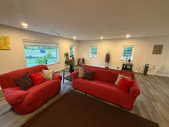 The large detached garage offers endless possibilities: a workshop, storage for toys or equipment, a small business space, or even a home for animals.
