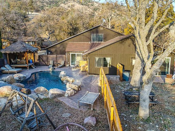Oasis in Bear Valley Springs gated community. Take advantage of the private Golf Course, country club, Equestrian center, horse trails, lakes, baseball fields, gymnasium, community pool, and a shooting range. This 3Bed/2Bath With a 1Bed/1bath Guesthouse sits on over 1 acre of Oak studded land and a Fantastic view of the valley. New kitchen and restroom cabinets with quartz counter tops, new 2 tone paint through out. Downstairs features mudroom, wood and tile flooring in the formal living and family room. Large Master suite on the first floor, offers wood flooring, walk in closet with custom built ins, custom master bath with rain shower. Bedroom 2 was combined with other room to create the ultimate kids room with custom built in desk and storage space. Upstairs is a very large space with a closet that can be used as a room or what ever your heart desires. The detached Guest house features wood floors, granite through out, ac/heat and a beautifully tiled restroom. Exterior features outdoor shower, pool W/rock water slide, Jacuzzi, large deck area, concrete paths with patio areas, concrete statue water features and multiple out buildings.