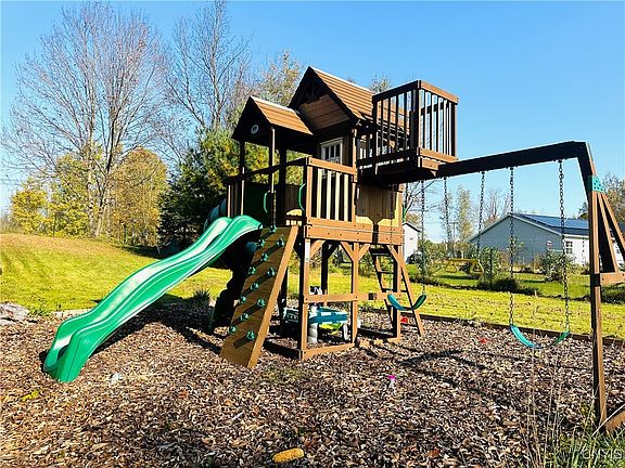 This charming ranch home, built in 2012, sits on 1.3-acre lot just a short drive from the village of Carthage. The property offers plenty of room to enjoy outdoor activities, featuring a large yard complete with a playset that's included. Inside, the home boast on open floor plan that seamlessly connects the living room, kitchen and dining room, creating a perfect space for gatherings. Vaulted ceilings enhance the sense of openness, while french doors provide natural light and lead to the patio space- perfect for relaxing. With 3 spacious bedrooms, one being the primary with a full bathroom, and the convenience of a first floor laundry, this home ensures efficiency and low maintenance. 1.3 acres makes it a wonderful retreat in a serene setting close to the village.