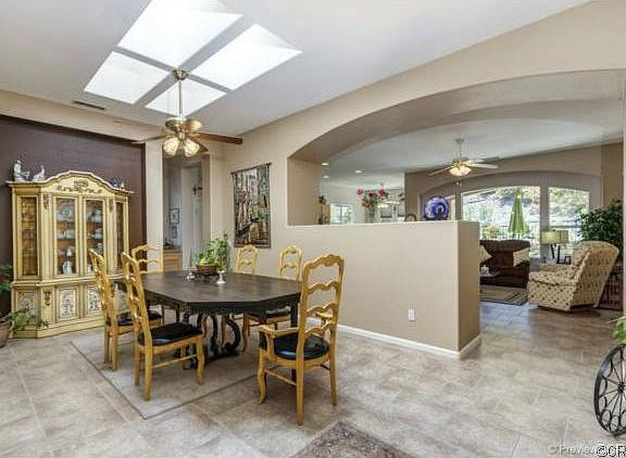 New Low Price. Beautiful lovingly cared for Laguna model home in Trilogy. This home is spotless and ready for move in. One of the few Shea built homes that has a delightful sky light and a separate dining room. The entire home is easy to care for with ceramic off set tiles throughout the living area. In addition to the over size dining room there is a large den that could accommodate a 3rd bedroom or a full office. The kitchen has a free standing island and plenty of room for casual eating at the counter or in the casual dining area surrounded by full length windows with views of the patio. A new decorator sink and upgraded faucet set has been recently added to the kitchen. The master bedroom is extra large and joins a dual sink bath with oversize shower. The master closet could be another room by itself. You will love the back yard. There are lots of flowers, lots of space and lots of privacy. A perfect place to relax at the end of the day.
